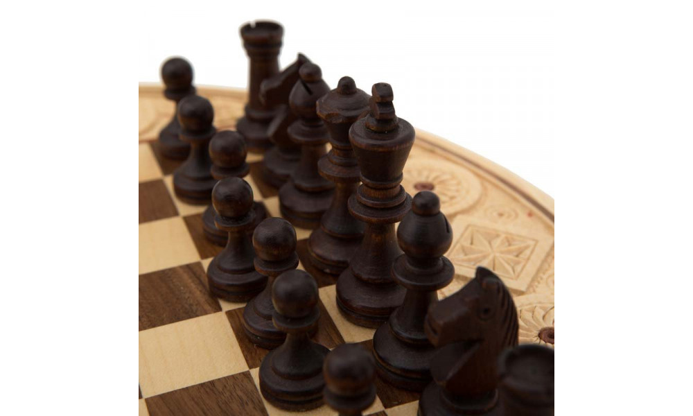 Очень привлекательная доска, где сразу в глаза бросается форма изготовления. Мы привыкли, что шахматы играют на квадратной доске, а здесь – круглая. Само поле осталось без изменений, поэтому можете не беспокоиться об изменении игрового процесса – всё по-старому.